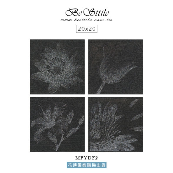 【20x50】 MPYD01 - 太空灰 MPYDF1 - 線條花磚 【31.6x31.6】 MPYDS1 - 太空灰 【20x20】 MPYDF2 - 拓印花磚 (圖案隨機出貨) ▲手工花磚、精緻花磚、典雅花磚,水泥花磚、拼圖花磚、玄關花磚、地毯花磚、幾何花磚,立體花磚、歐式古典花磚、西班牙鄉村花園。