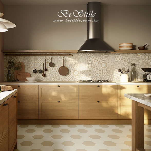 【 微風街道 復古鄉村質感六角花磚 】