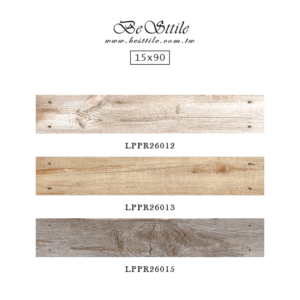 LPPR26012 - 漂木白 LPPR26013 - 原木棕 LPPR26015 - 朽木灰 ▲木紋磁磚,抗潑水、超耐磨、抗污,耐刮又好清理,年輪木紋,時尚現代磚、室內牆磚、Loft工業風,木紋地板磚、南方松木地板磚
