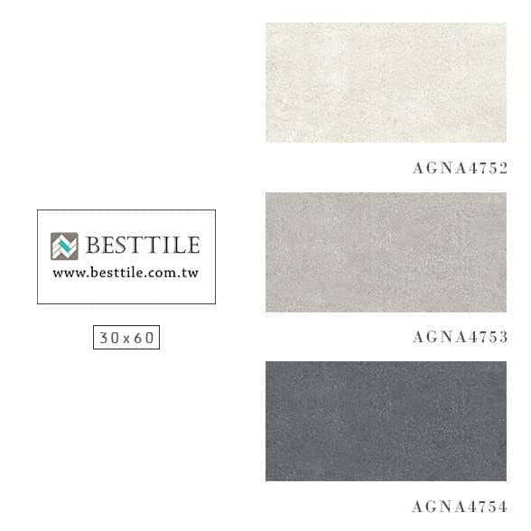 【30x60】 【60x120】 AGNA4752 - 麥穗白 AGNA7352 - 麥穗白 AGNA4753 - 流川灰 AGNA7353 - 流川灰 AGNA4754 - 石子黑 AGNA7354 - 石子黑 【60x60】 AGNA7752 - 麥穗白 AGNA7753 - 流川灰 AGNA7754 - 石子黑