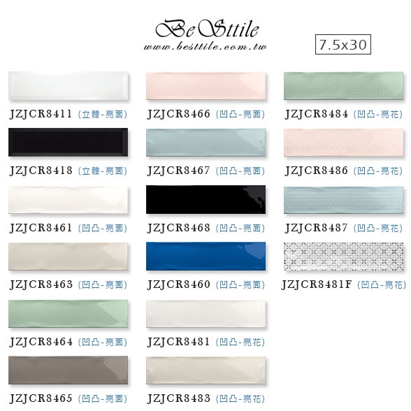 JZJCR8464 - 薄荷綠 JZJCR8481F - 花磚 (12種紋路隨機)