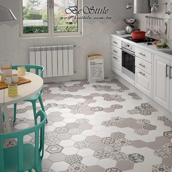 ▲六角磚,幾何、六角、蜂巢,現代風、工業風,咖啡廳、特殊造型磚、花磚