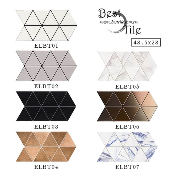 ELBT01 - 無印白 ELBT02 - 銀河灰 ELBT03 - 靜謐黑 ELBT04 - 復古棕 ELBT05 - 卡拉拉 ELBT06 - 金屬棕 ELBT07 - 冰河藍 ▲六角磚,幾何、六角、蜂巢,現代風、工業風,咖啡廳、特殊造型磚、花磚