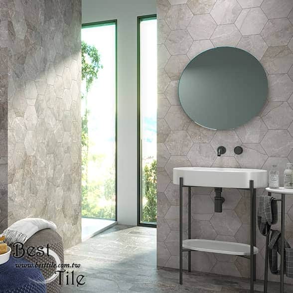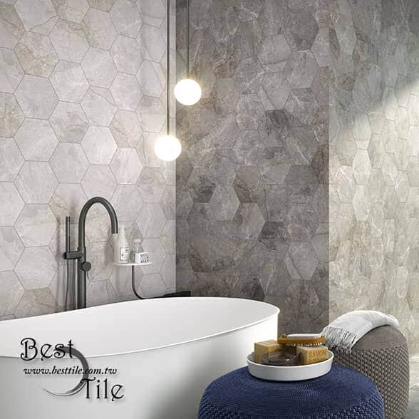 【 伊克斯山脈 大地色系大理石紋六角磚 】