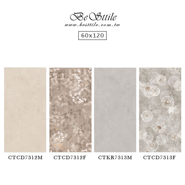 CTCD7312M - 奶油白(霧面) CTCD7313M - 奶霧灰(霧面) CTCD7313F - 可可棕(花磚) CTCD7313F - 柔霧灰(花磚) ▲電視牆、主牆、浴室廁所、戶外地板、牆壁、公共空間、客廳、臥房、餐廳、廚房、衛浴、戶外牆、大理石、花崗石、板岩